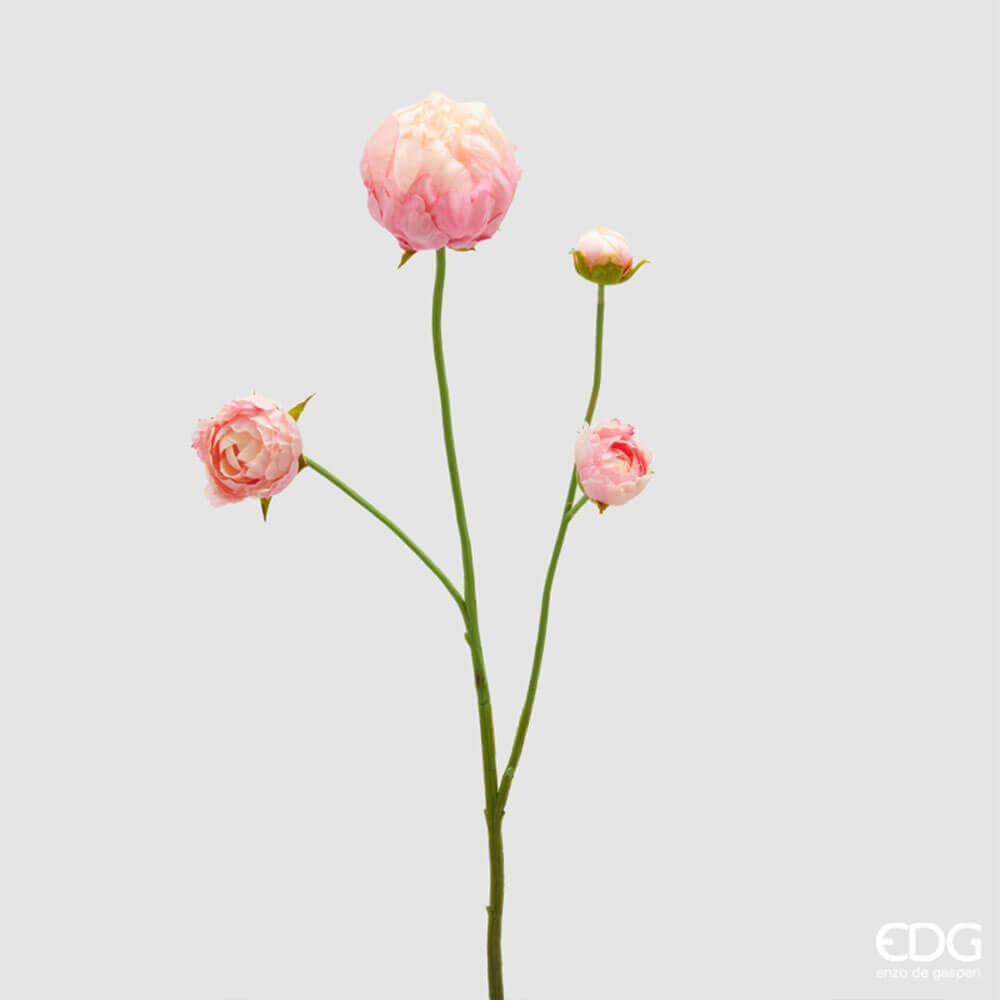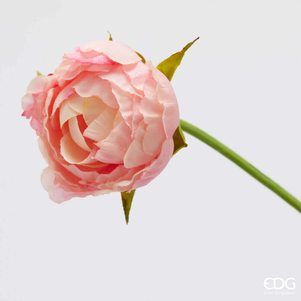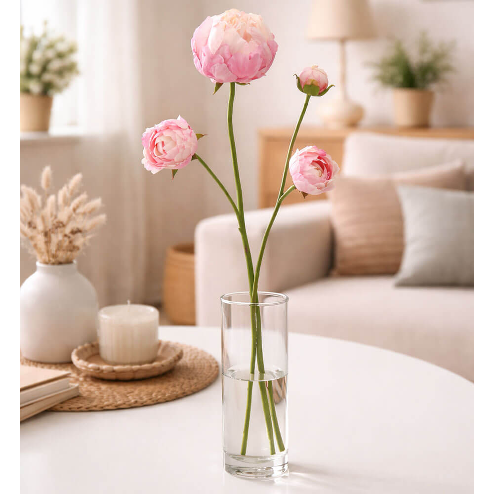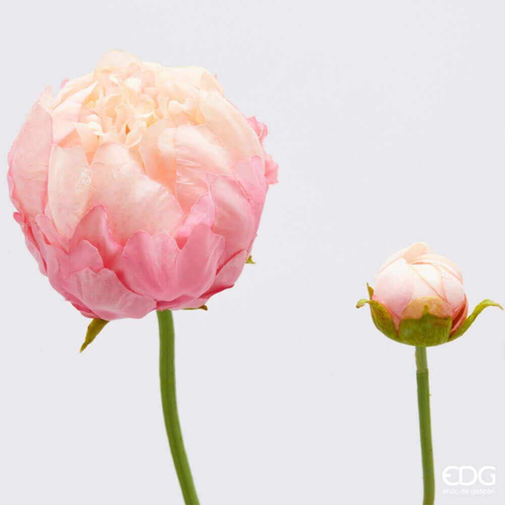 Questo ramo di peonia artificiale Enzo de Gasperi colpisce per il suo aspetto realistico e raffinato. Il fiore principale è ricco e voluminoso, con petali sovrapposti dalle morbide sfumature rosa cipria e avorio, leggermente ondulati per un effetto naturale. Il bocciolo laterale aggiunge dinamismo e realismo alla composizione. Il gambo verde, slanciato e flessibile, permette di modellare il ramo con facilità, rendendolo ideale sia da solo in un vaso che inserito in composizioni floreali eleganti. Realizzato in plastica di alta qualità, è perfetto per decorazioni durature senza manutenzione.