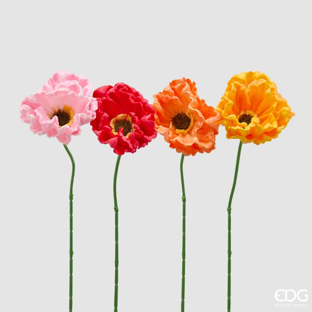 Il mazzo di 6 Papaveri Real Touch di Enzo de Gasperi è una decorazione floreale artificiale curata nei minimi dettagli, pensata per offrire un effetto estremamente naturale sia alla vista che al tatto. Il fiore presenta petali morbidi e leggermente ondulati, con centro scuro e stami in rilievo, mentre lo stelo verde è flessibile e ben proporzionato. Disponibile in quattro varianti colore assortite – arancio, rosa, giallo e rosso – è ideale per creare composizioni vivaci, centrotavola primaverili o piccoli bouquet decorativi dal gusto elegante e contemporaneo.