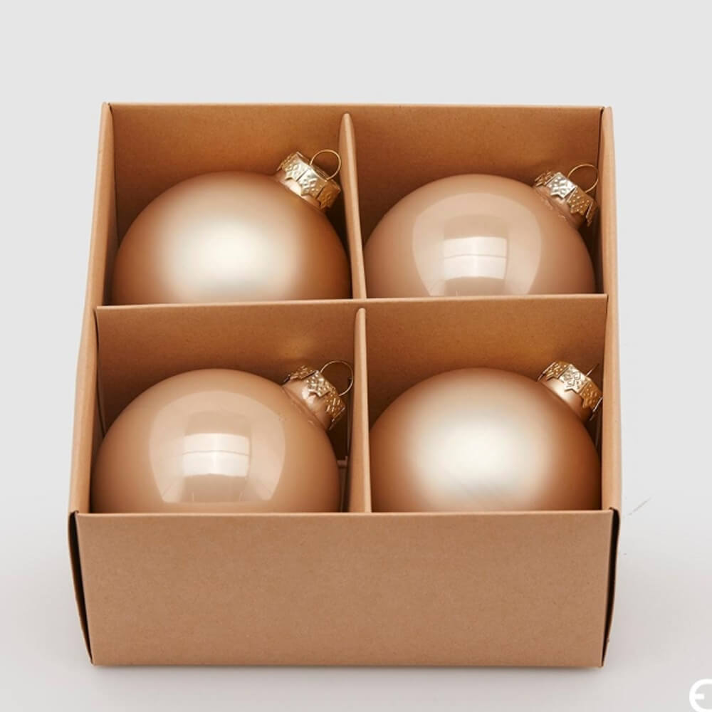 Scatola con 4 sfere in vetro color platino (2 lucide e due opache), perfette per il tuo albero o per completare una decorazione natalizia.