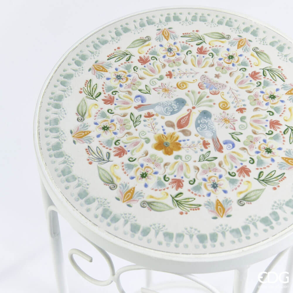 - Piano rotondo in ceramica decorata con disegni floreali