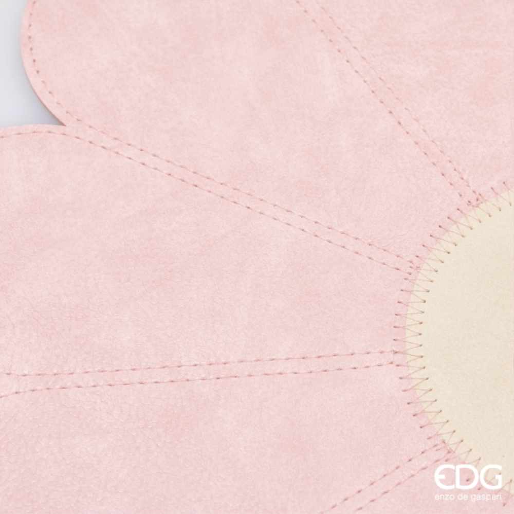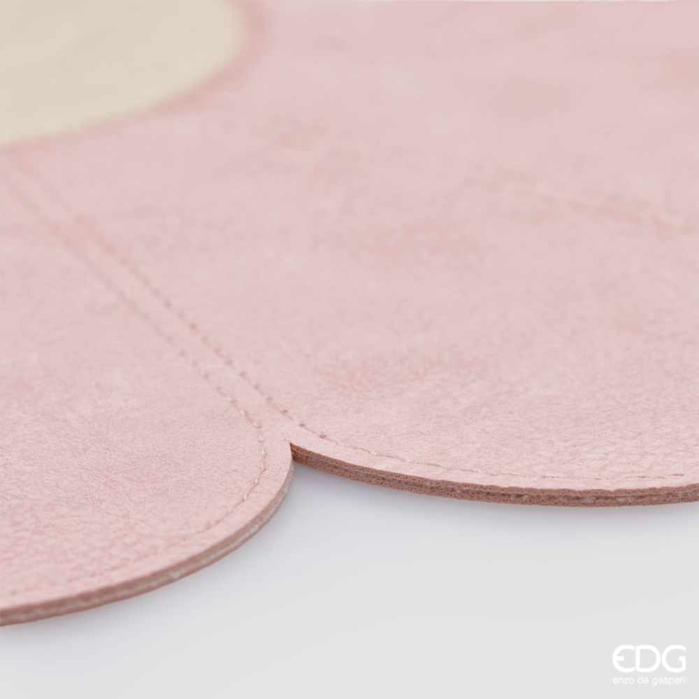 La tovaglietta Margherita Enzo de Gasperi veste la tavola con delicatezza: petali rosa cipria dalla texture effetto pelle, centro rotondo avorio e impunture regolari che evidenziano ogni spicchio. La cucitura perimetrale definisce il profilo e dona un look sartoriale, perfetto per apparecchiature curate. Composizione: 90% PVC, 10% poliestere. Non lavare in lavatrice: si pulisce facilmente con un panno umido.