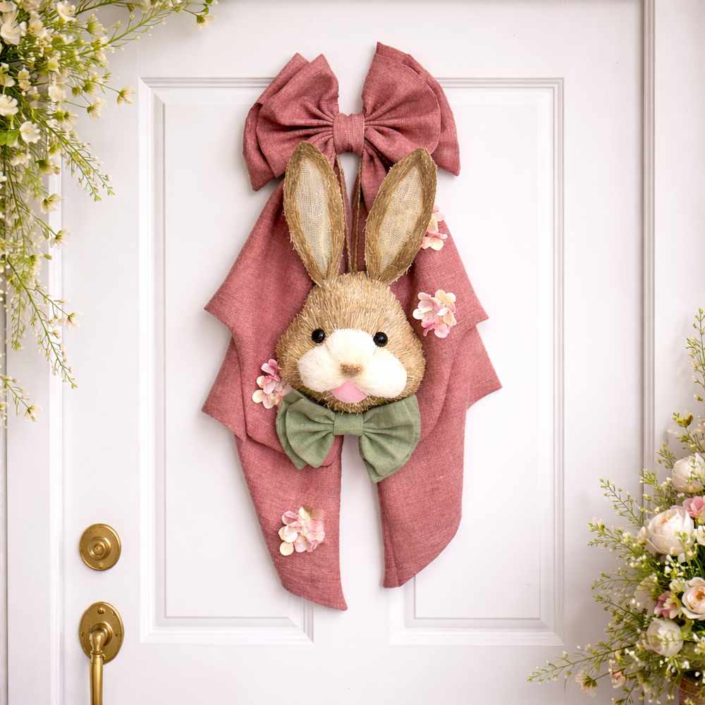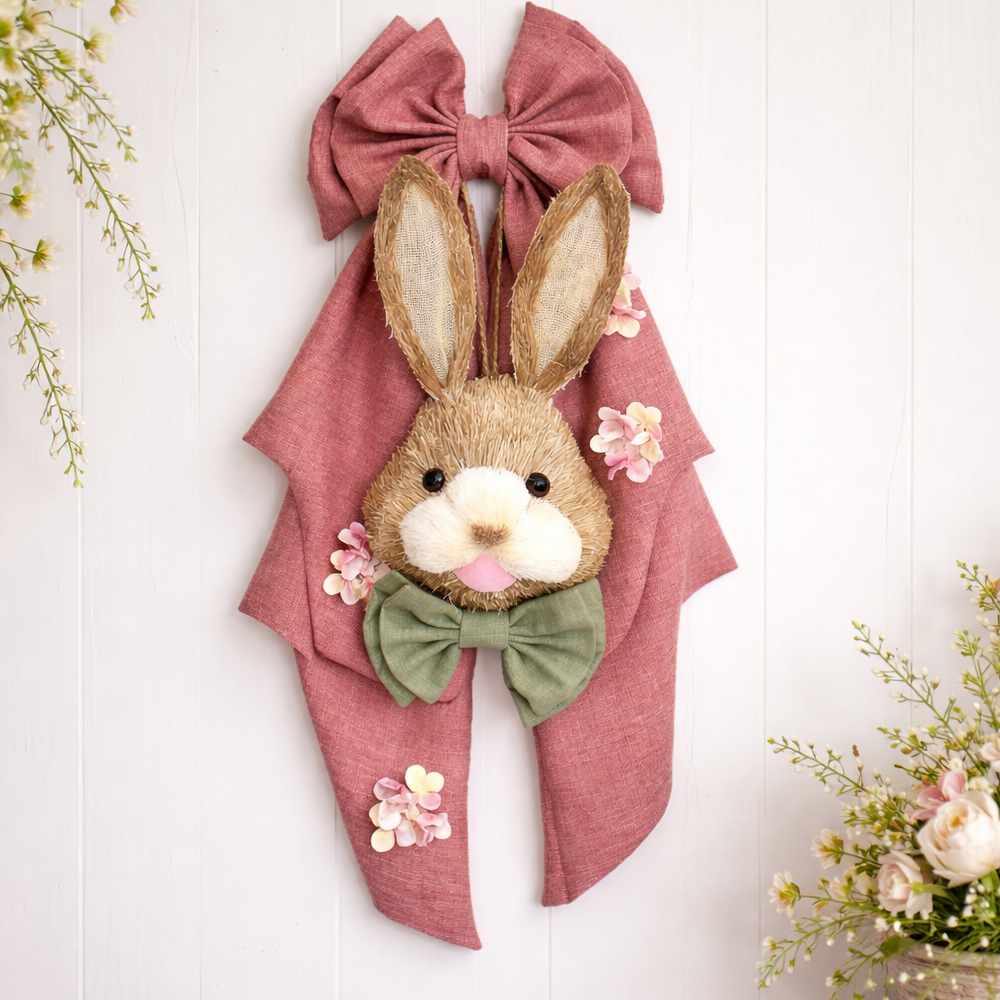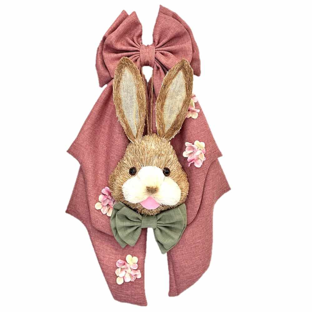 Fioccò decorativo Madame Fioccò in tonalità rosa, con coniglio centrale e piccoli dettagli floreali.