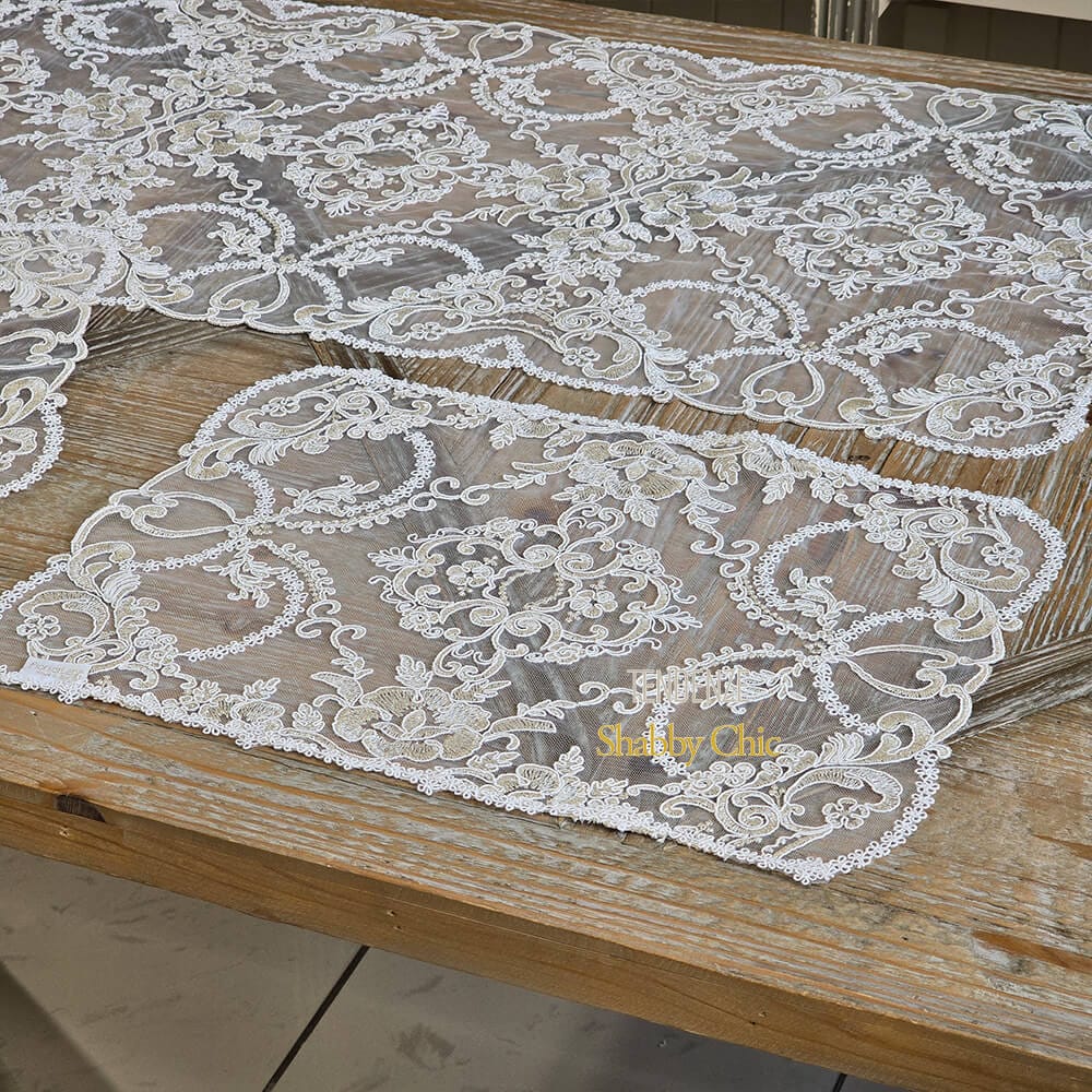 Il tris di centrini Fiori di Lena in pizzo rebrodé dorato è un’elegante composizione decorativa che illumina ogni ambiente con raffinata delicatezza. Il set comprende un centrino grande da 93×45 cm e due più piccoli da 44×31 cm, ideali per creare armoniosi giochi di sovrapposizione su consolle, tavolini e credenze.