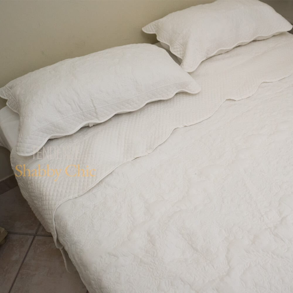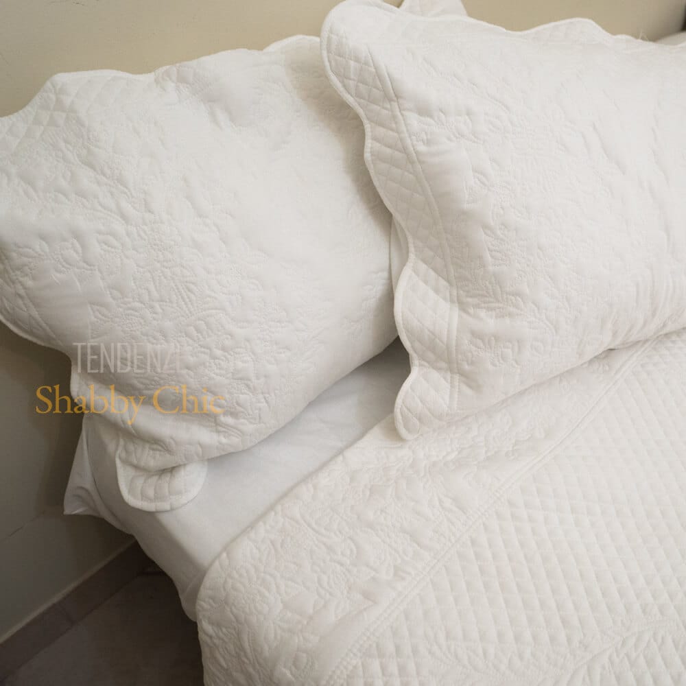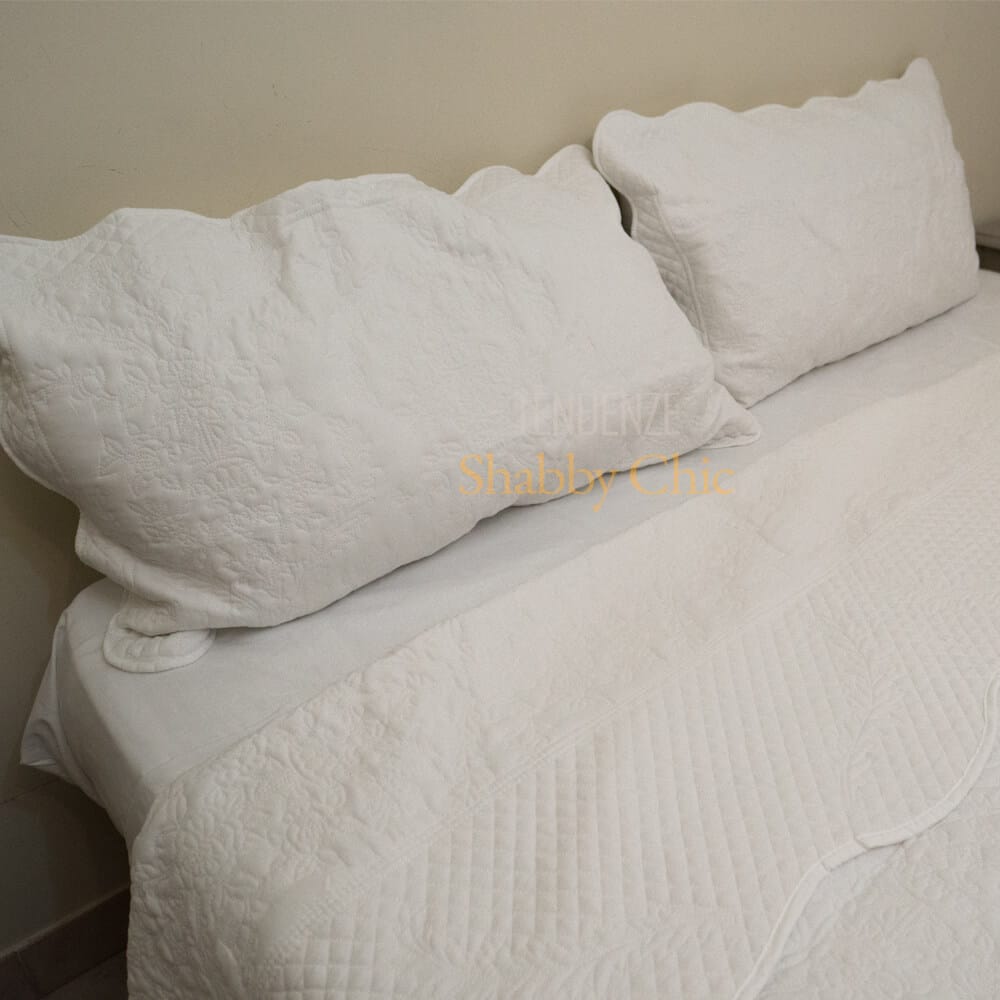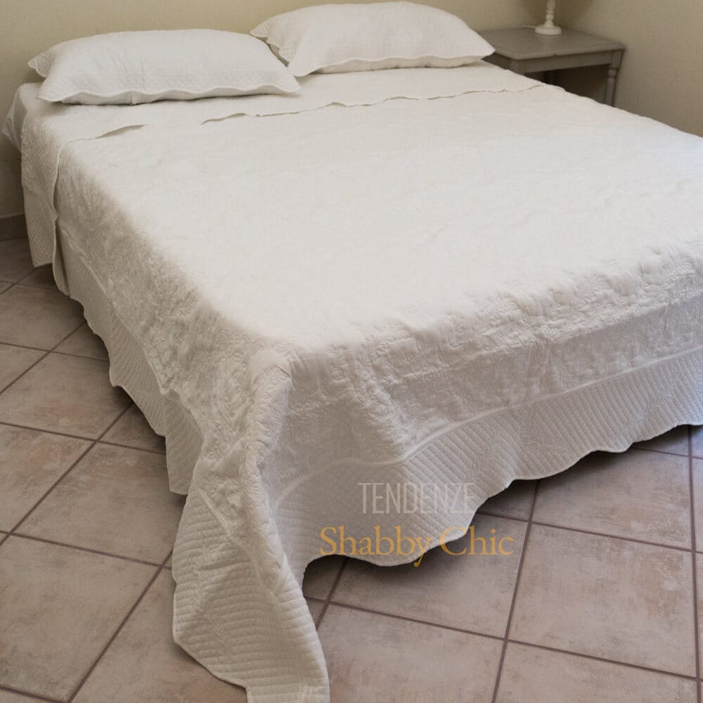Il copriletto matrimoniale Lione di L’Atelier 17 in bianco puro รจ un classico senza tempo che si adatta a diversi stili di arredamento, dal shabby chic al piรน moderno. La lavorazione boutis con dettagli floreali in rilievo crea un effetto sofisticato, mantenendo al contempo la delicatezza del design. La tonalitร bianca contribuisce a dare luce e ariositร alla stanza, rendendo questo copriletto un elemento essenziale per una camera da letto elegante e rilassante.