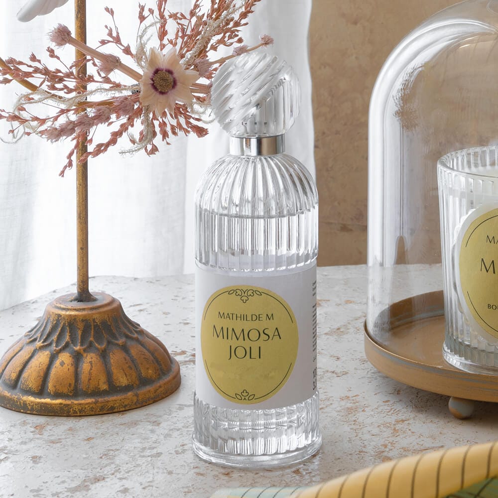Scopri il Profumo per Tessuti Mimosa Joli di Mathilde M., un’elegante fragranza studiata per avvolgere i tuoi tessuti in un abbraccio raffinato e delicato. Le note iniziali di petitgrain e bergamotto donano una freschezza vibrante, mentre il cuore di mimosa regala una dolcezza ammaliante che si fonde armoniosamente con la base avvolgente del muschio.