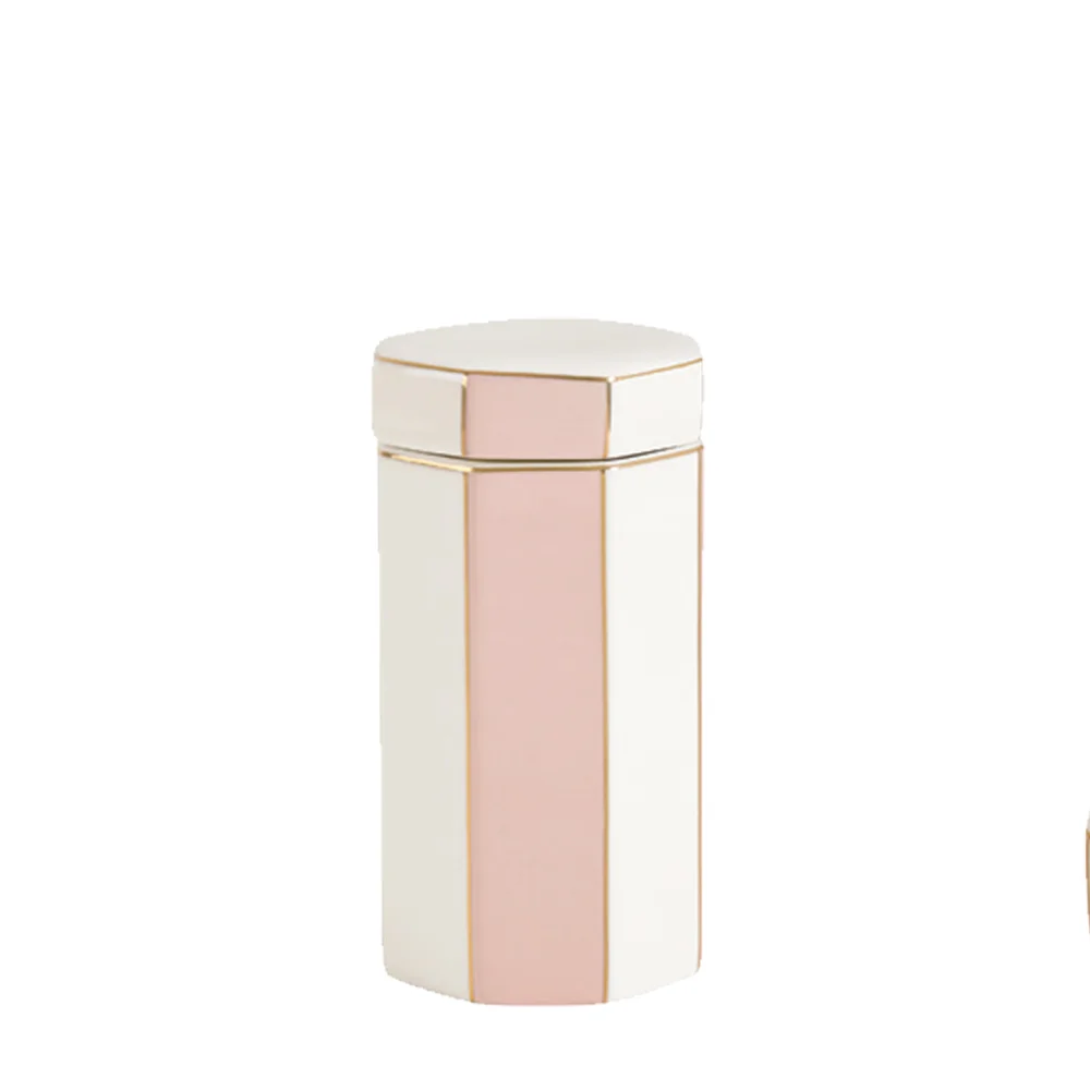 Mathilde M Set bagno Madame de Recamier in ceramica color rosa, bianco e dettagli oro composto da 4 pezzi: