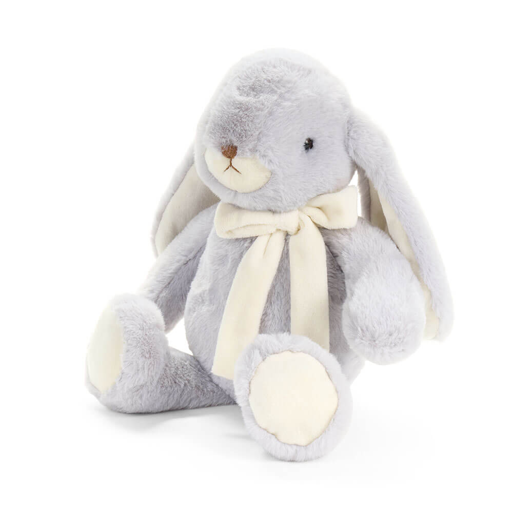 Delicato coniglio peluche grigio perla della collezione PePen, realizzato in tessuto ultra morbido e vellutato. Le lunghe orecchie, il fiocco color avorio e le zampette coordinate creano un design elegante e rassicurante, perfetto come complemento d’arredo o come dolce idea regalo.