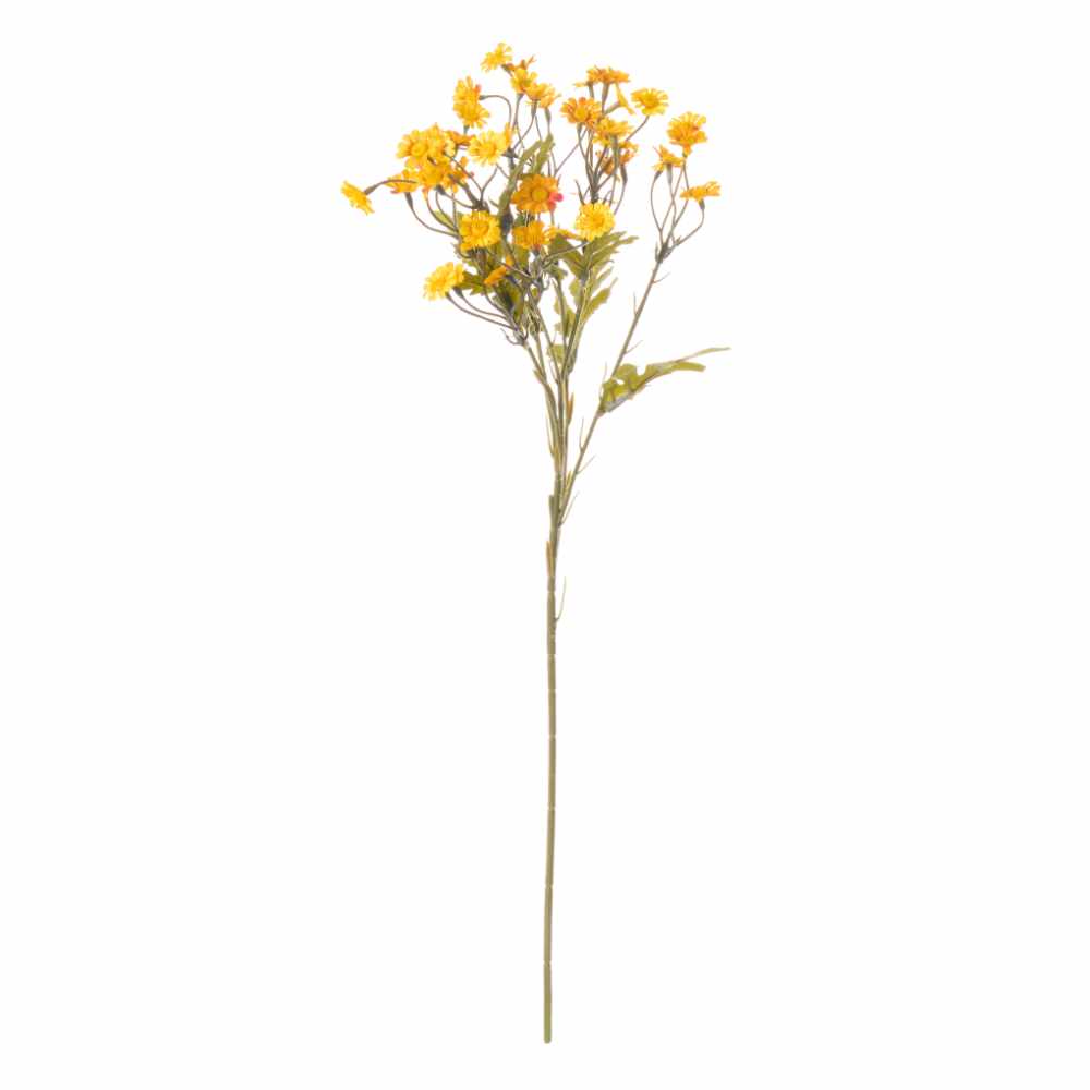 Un’accensione di colore che cambia subito l’atmosfera: le margheritine gialle, distribuite in piccoli gruppi, creano volume senza risultare “pesanti”. I rametti ariosi e le foglie verdi realistiche danno un effetto naturale e curato, perfetto da solo o mixato ad altri steli per un bouquet da vetrina.