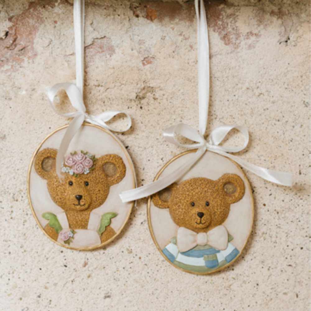 Un piccolo dettaglio che cambia l’atmosfera: il medaglione Sweet Bear è ideale su albero, ghirlande, maniglie o come chiudi-pacco elegante. Toni cipria e pastello, finitura opaca e nastro avorio per un look raffinato e “dolce” al primo sguardo.