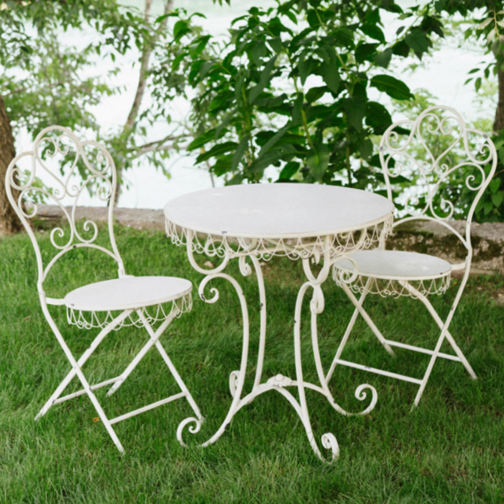 Dal gusto provenzale, questa sedia pieghevole in metallo avorio unisce praticità e charme: struttura sottile, dettagli a ricciolo nello schienale e seduta con bordo traforato effetto pizzo. Ideale in giardino, sul balcone o in cucina per un tocco romantico senza ingombro.