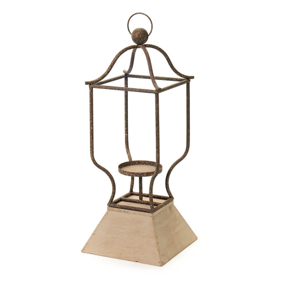 Coppia di Lanterne in metallo con pase in legno, realizzate da Nuvole di Stoffa.