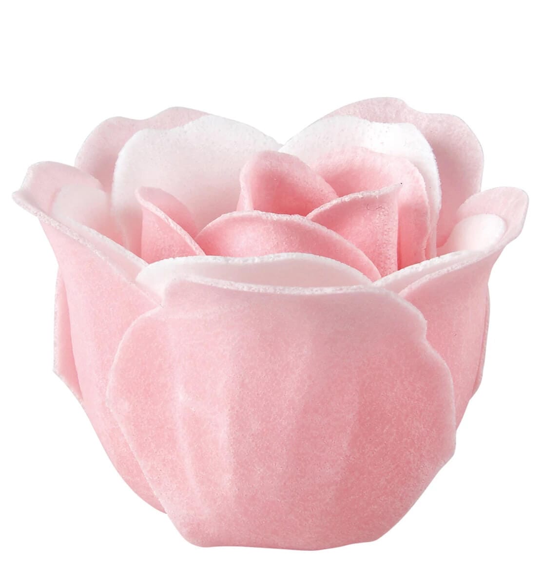 Scatola con 12 rose di sapone rosa. Per lavarti le mani basta staccare un petalo e sfregarti le mani. La tua pelle sarà piacevolmente profumata. Usale per decorare il bordo del tuo lavandino o della vasca.