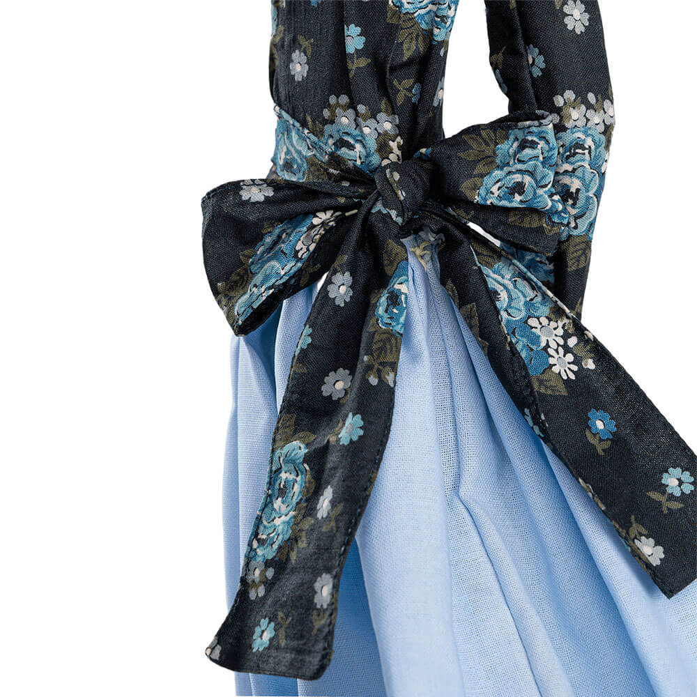 La base in legno naturale e il vestito in tessuto floreale evocano un’eleganza senza tempo, fondendo arte e funzionalità. Ogni dettaglio – dal fiocco sul retro alla piega della gonna – racconta la cura e la sensibilità dell’artigianato greco.