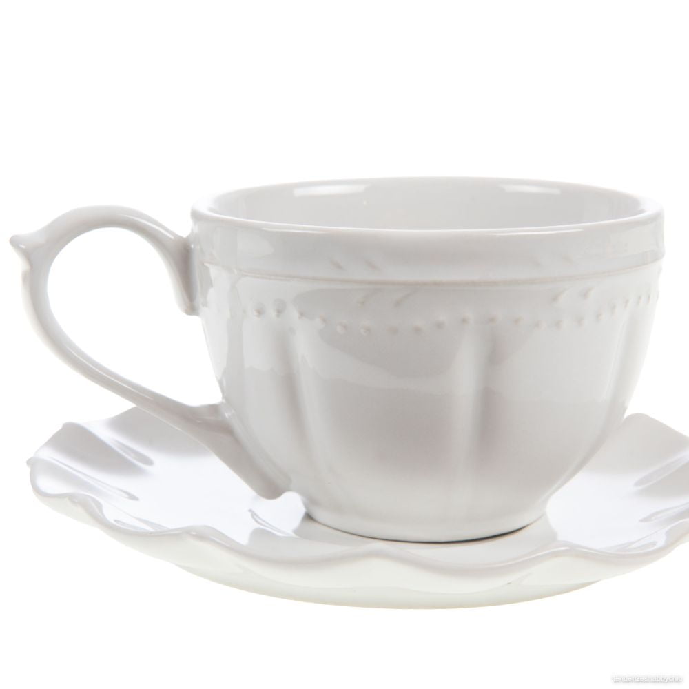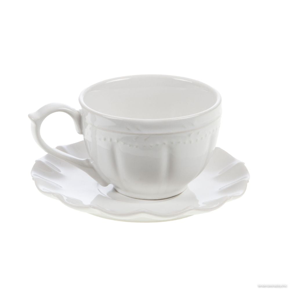 Tazza da te in porcellana decorata completa di piattino, perfetta per infusi.